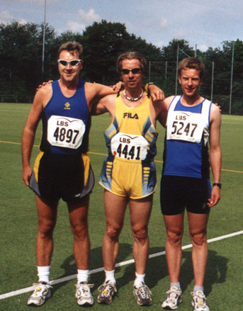 Ein letzter Händedruck zwischen Ralf Kladny und mir (Dr. Adolf Körber als dritter Ansbacher hatte sich weiter hinten im Feld versteckt) als der Startschuß fiel; 9 Sekunden später überquerten wir die Linie. Der